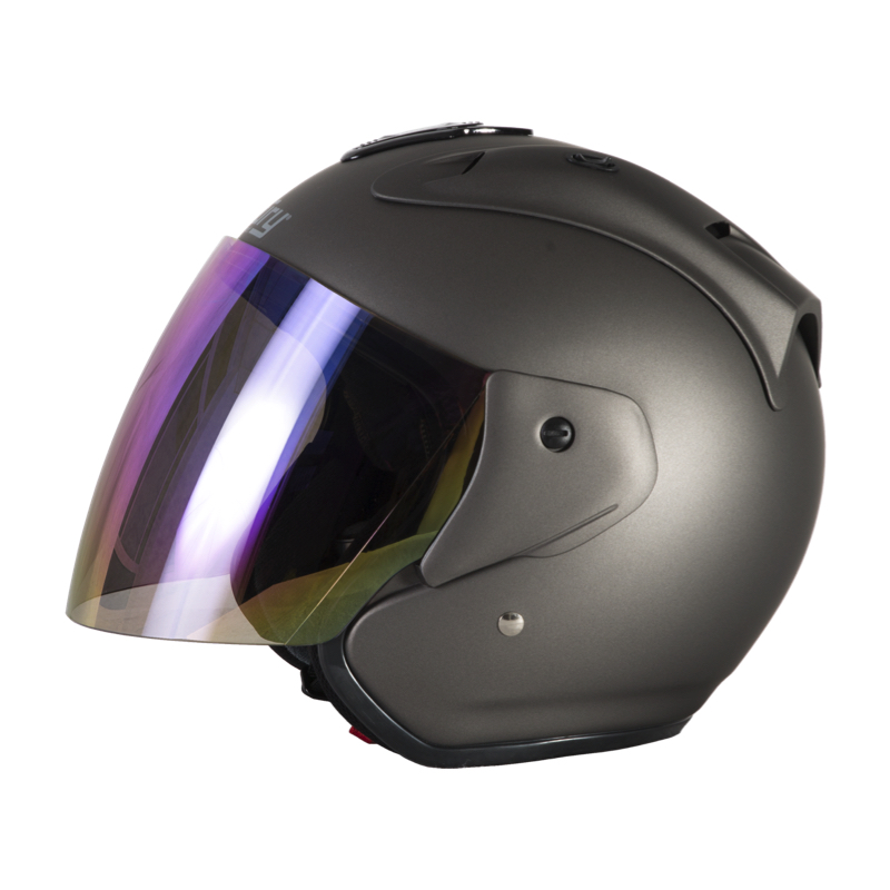 Fury Casque Jet Nero Titanium Mat Ecran Miroir Arc en Ciel